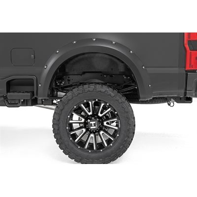 Add aggressive good looks quickly and easily with Rough Country's Fender Flares. Nothing compliments a new lift, wheels, and tires like a set of stylish, mean-looking fender flares. Rough Country's Fender Flares are designed with a simulated riveted look. These fender accessories bolt-on quickly and easily in a few secure mounting points, making installation a cinch. No cutting or drilling is required to install, and these flares can be easily removed and return your truck to stock! These UV treated fender flares ship in flat-black or can easily be painted to match your vehicle, and are designed to withstand the sun, rain and other elements of nature. Rough Country Fender Flares are guaranteed to be free of defects for 3 years!