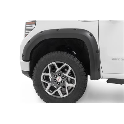 Add aggressive good looks quickly and easily with Rough Country's Fender Flares. Nothing compliments a new lift, wheels, and tires like a set of stylish, mean-looking fender flares. Rough Country's Fender Flares are designed with a simulated riveted look. These fender accessories bolt-on quickly and easily in a few secure mounting points, making installation a cinch. No cutting or drilling is required to install, and these flares can be easily removed and return your truck to stock! These UV treated fender flares ship in flat-black or can easily be painted to match your vehicle, and are designed to withstand the sun, rain and other elements of nature. Rough Country Fender Flares are guaranteed to be free of defects for 3 years!