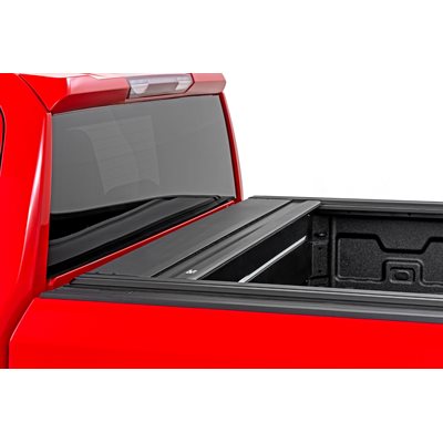 Every truck owner knows the importance of securing and protecting their gear, especially when conquering trails or venturing into the wild. With the Powered Retractable Bed Cover for the Chevy/GMC 1500 models, you not only shield your equipment from unpredictable weather but also add an unmatched layer of security and style to your truck. Engineered with precision, this bed cover is designed to serve you whether you're cruising smooth highways or tackling rugged trails.Maximized Bed Access: The cover rolls smoothly to provide nearly full bed access, allowing you to make the most of your truck's storage potential.Heavy-Duty Aluminum Construction: Built tough with a rugged aluminum frame and sleek matte black finish, this bed cover is engineered to endure daily use and intense outdoor conditions without compromising on style.UV Protection for Long-Lasting Finish: Featuring built-in UV protection, the cover resists sun damage, keeping it looking brand new and preventing any fading over time.Lock Your Cover in Any Position: Thanks to its innovative electromagnetic brake system, you can lock the cover securely at any point along the rails, offering total flexibility for your storage needs.Remote Key Fob for Convenient Entry: Open or close your bed cover with just the push of a button using the integrated remote key fob, ensuring easy access even from a distance.Utility Rail with T-Slots: Enhance your storage options with the integrated utility rail, perfect for mounting racks and accessories to maximize your truck's versatility.Integrated Bed Rail Controls: Easily open and close the bed cover from the side rail for added convenience and quick access to your gear.Key Fob-Controlled LED Light Strip: The integrated LED light strip illuminates your truck bed, offering better visibility at night, controlled conveniently via the key fob.Auto-Locking Security: For added peace of mind, the bed cover features an auto-locking function, ensuring your cargo stays secure at all times.Rough Country's Powered Retractable Bed Cover combines style, security, and convenience, giving you the confidence that your truck is looking its best while your gear stays protected.