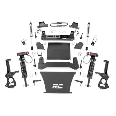 Explore New Heights: Transform your truck with Rough Country's 4-inch Suspension Lift, perfectly designed to enhance the bold, aggressive styling of GM's all-new fourth-generation Sierra 1500 AT4 and Silverado 1500 Trailboss. These models, already equipped with GM's factory two-inch kit, are taken to the next level with Rough Country's lift kit'giving your vehicle a commanding presence on and off the road. Whether you're tackling tough trails or cruising through city streets, the Rough Country 4-inch Lift ensures improved performance and head-turning appeal.Innovative Design and Construction: When changing a vehicle's suspension, the key to preserving ride quality is keeping the geometry of all suspension components as close to their factory angles as possible. This suspension kit combines the use of durable steel knuckles, differential brackets, and drop cross members to reduce cv angles and simulate factory angles all while achieving new heights. Featuring a set of upper strut spacers that offer uncompromised strength and rigidity, gaining lift height is no issue. Completing the rear of this suspension kit is a set of rear blocks, shocks, and u-bolts that allow you to retain factory-like geometry. This combined setup provides enough clearance to run 35" tires without additional modifications. We didn't want to limit you to one standard kit. Rough Country's 4-inch kit is configurable with all the shock options that we offer. This allows you to choose which shock series you want! Ranging from our nitrogen-charged N3 shocks to our Vertex reservoir shocks the power to choose is in your hands.Installation: With minor cutting and a strut compressor required to install, an estimated timeframe of 8-10 hours is recommended to complete this full installation. This full kit can be installed at home and can be completed efficiently and quickly!Limited Lifetime Replacement Warranty: Rough Country's 4" Suspension Lift Kit is backed with a limited lifetime replacement warranty towards manufacturer defects. As such, the product is protected from structural and workmanship damage after the date of purchase. With our industry-leading warranty give yourself peace of mind when using Rough Country's Suspension products!