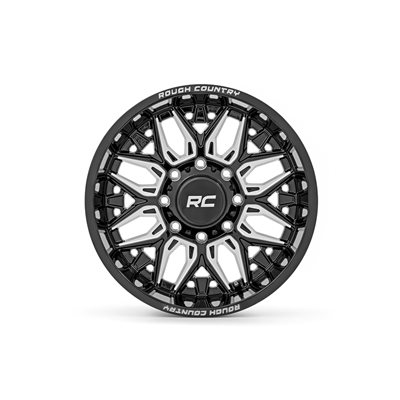 Set yourself apart from the pack with Rough CountryGÇÖs One-Piece Series 86 Wheels. This 8-spoke black and machined wheel offers an incredible look thatGÇÖs sure to turn heads. This one-of-a-kind wheel features 8 spokes that flare out near the lip for a dramatic visual style thatGÇÖs perfect for any lifted vehicle. This stylish wheel features a gloss black coat with machined accents that pop under any truck or Jeep.Rough CountryGÇÖs Series 86 is a one-piece wheel design, constructed from a single piece of heavy-duty aluminum for the optimal balance of weight and performance. Each Series 86 Wheel includes a black center cap with GÇ£RCGÇ¥ logo design and includes a limited lifetime warranty.