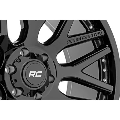 Stand Out in Style: Make a bold impression with Rough Country's One-Piece Series 95 Wheels. Featuring a sleek gloss black finish and aggressive 8-spoke design, these wheels deliver head-turning looks that elevate the stance of any lifted truck or Jeep.Engineered for Performance: The Series 95 is crafted from a single piece of high-strength aluminum, delivering the ideal combination of lightweight performance and rugged durability. Built to handle the demands of off-road terrain without sacrificing style.Signature RC Details: Each wheel includes a custom black center cap with the iconic RC logo and an embedded "Rough Country" nameplate for a clean, finished look that completes your build.Warranty-Backed Confidence: Drive with peace of mind thanks to a 1-year finish warranty and Rough Country's Limited Lifetime Structural Warranty, ensuring lasting protection and satisfaction.