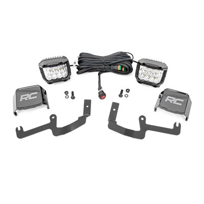 Powerful Side Illumination: Ensures clear visibility for off-roading at night and during low-light conditions.Easy Installation: 100% bolt-on design, no cutting or drilling required for a quick setup.No Interference with Washer Nozzle: Designed to ensure proper function without disrupting the washer nozzle or spray pattern for optimal windshield cleaning performance.Durable LED Light Cubes: IP67 waterproof-rated for reliable performance in all weather conditions.Premium Wiring Harness: Includes a braided harness with an in-line fuse and on/off switch for convenient operation.Customizable Lighting Options: Available with Black Series LED Pods, OSRAM Pods, Spectrum Series, and DRL options.Low-Profile Mounting: Tucks neatly along the base of your windshield for a sleek, unobtrusive look.3-Year Warranty: Backed by Rough CountryGÇÖs 3-year LED warranty for peace of mind.
