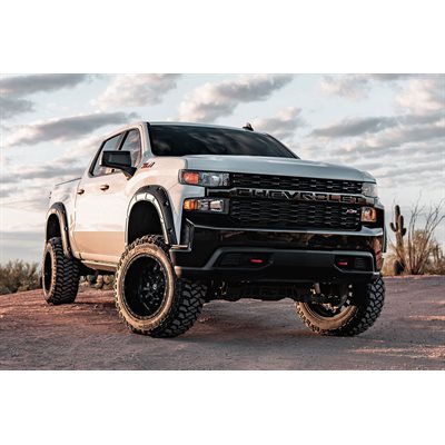 Innovative Design. It's time to stand out from the crowd and rise above your peers. Increase your truck's tire coverage with Rough Country's Defender Flares for the fourth-generation Chevrolet Silverado 1500. These aggressively good-looking flares transform your Silverado's exterior boasting 2-inches of tire coverage. These uniquely designed flares are sure to protect your Chevy's body from mud or road debris kicked up by the tires.\Durable Construction. With everyday truck drivers in mind, Rough Country designed a Fender Flare that recognizes your expectations for tough tactical design, and your right to demand products with high reliability and outstanding quality. Don't settle for anything less! Rough Country's Defender Flares are designed to handle on or off-road terrain. Rough Country's fender flares are constructed of a smooth ABS UV-protected KoradGäó plastic. This material is lightweight and can endure the elements. The UV treatment process eliminates chalking and helps prevent sun fading.\Limited Lifetime Replacement Warranty. Rough Country's Defender Flares are backed with a limited lifetime replacement warranty towards manufacturer defects. As such, the product is protected from structural and workmanship damage after the date of purchase. With our industry-leading warranty give yourself peace of mind when using Rough Country products!\