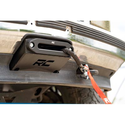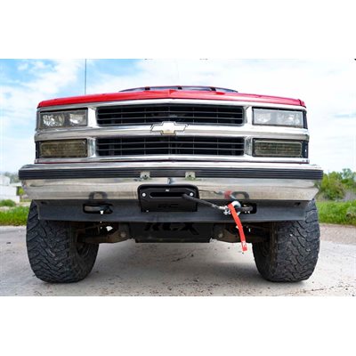 Easy installationHidden installation behind the front bumperDoes NOT require moving the factory bumper - Front bumper stays in stock location!Does NOT impede airflow to the radiatorWill accommodate most winches on the market (Standard 4.5in x 10in 4 bolt mount)Durable black carbon powder coatingBuilt from heavy-duty 1/4in thick steel