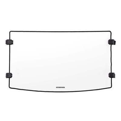 Width: 49.75" Height: 30.465"Durable, thick polycarbonate construction.Inner and outer hard coating to resist scratching.Contoured design.Rubber seal for a precise fit.Works with factory or aftermarket roofs.Easy to install.