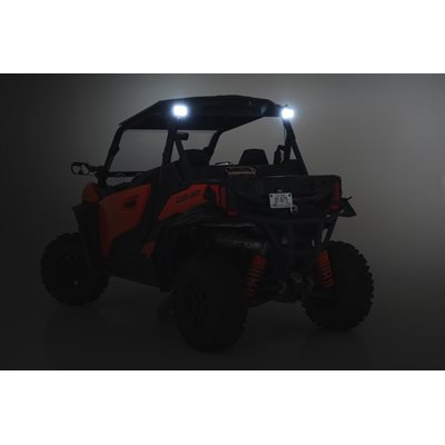 COMMAND THE DARK with Rough Country's Rear-Facing Cube LED Kit for Can-Am Maverick Trail/Sport models. This handy solution includes everything you need to upgrade your Can-Am Maverick with a set of 2-inch or 3-inch LED light cubes at the back of the roof for outstanding illumination.\Whether you're off the beaten path at sunset or gathering all your gear before dawn, you'll be glad to have access to additional lighting power to tackle the task at hand. With up to 13,500 lumens and 140 watts of high-intensity CREE LED output, you're sure to have plenty of LED power. Take your pick of our black-series 2-inch LED Cube or our 3-inch Wide Angle LED Cube!\These all-weather lights feature a durable, IP67 Waterproof, die-cast aluminum housing and include a premium wiring harness with toggle switch and in-line fuse. Best of all, this easy-to-install kit features a 100% bolt-on installation procedure allowing you to upgrade your Defender quickly and easily! Don't miss this opportunity to upgrade your UTV with one of the best Can-Am Maverick Trail/Sport Accessories available!