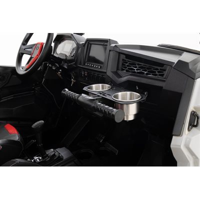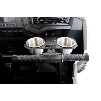 Innovative Upgrade. Fed up with drink spills while taking your Polaris Rzr off-road? Rough Country's Dual Cup Holder is the perfect solution. It attaches easily to the passenger grip handle, accommodating both cans and larger bottles. Crafted from durable 11ga steel with a tough powder coat finish, it's designed to withstand any rugged trail. With an easy, bolt-on installation you'll be back to the trails in no time, all while your drinks stay right where they belong.\Limited Lifetime Replacement Warranty. Rough Country's Dual Cup Holder is backed with a limited lifetime replacement warranty towards manufacturer defects. As such, the product is protected from structural and workmanship damage after the date of purchase. With our industry-leading warranty give yourself peace of mind when using Rough Country's Suspension products!-á