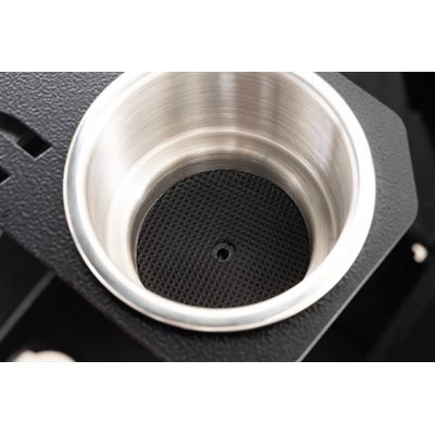 Powder Coated - UV , scratch, and chip resistant.2 - Stainless steel cup holder with step sizes to accommodate smaller cuts and larger cups.Cup holder has a drain hole in the center and padded bottom to reduce cup rattle.Easy install with rivets.Keeps drink close at hand and secure.