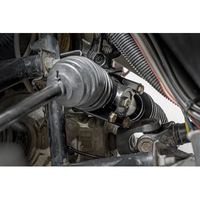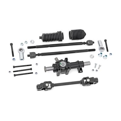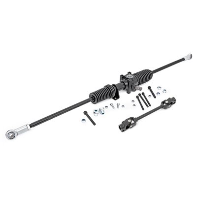 Don't let poor steering lead you off course: If you're looking for a heavy-duty rack and pinion system that guarantees precision steering, look no further than our upgrade for the Polaris Ranger RZR 800 S. Designed to maximize your UTV's performance, this kit tackles sloppy steering so you can confidently navigate rough terrains. Built for both hard work and off-road adventure, it's the perfect upgrade to enhance your Ranger RZR experience.Heavy-Duty, High-Performance Design: Rough Country's Rack and Pinion Kit for the Polaris Ranger RZR 800 S is engineered to outperform the stock OE system. Featuring a robust 22mm knuckle connection shaft with a 27% diameter increase over OEM shafts, and an 18.8mm spline diameter that's 25% larger than the original, this kit is built for durability and strength. The black e-coat finish provides exceptional corrosion and chip resistance, ensuring your rack and pinion system stays looking sharp while standing up to the toughest conditions. Plus, with the improved number of turns (3.33 vs 3.16) and increased driving torque (1.5NM vs 1.3NM), you'll experience smoother, more responsive handling with every twist of the wheel.Upgraded Steering Shaft for Ultimate Strength: The kit includes a heavy-duty steering shaft designed to withstand extreme conditions. With hot-forged U-joint yokes and a 9.375% increase in U-joint bearing diameter, the upgraded steering shaft delivers the rugged reliability you need to tackle even the harshest terrains. This shaft ensures top-notch performance and durability, so you can push your Ranger RZR to its limits without compromising on control.Effortless Installation & Peace of Mind: Our Rack and Pinion Kit comes with all the hardware you need for an easy, straightforward installation. And with Rough Country's industry-leading limited warranty, you can drive with confidence knowing your kit is backed by our commitment to quality and performance.