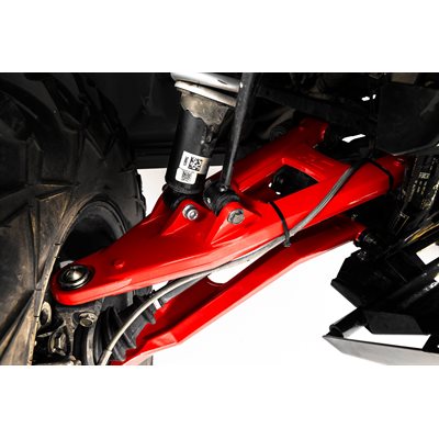 Fit Larger Tires with Ease: Accommodates up to 30-inch tires at stock height without the need for additional lift.Premium 6061 Forged Aluminum: Built from high-strength forged aluminum for superior performance and long-lasting reliability.Unmatched Strength: Up to six times more resistant to bending than factory control arms.Lightweight Yet Durable: Reduces weight without sacrificing toughness for better handling and performance.Forward Offset Design: Provides a full 2-inch forward offset for improved tire clearance and stability.Boosted Ground Clearance: Adds 1.5 inches of additional clearance to tackle tougher terrain with confidence.Stylish Finish Options: Available in raw aluminum, powder-coated red, or sleek black to match your ride's style.Simple Installation: Designed for an easy, hassle-free bolt-on install.Upgraded Ball Joints Included: Pre-installed, greaseable ball joints for smooth operation and easy maintenance.Enhanced Bushings & Sleeves: Comes with greaseable A-arm bushings and sleeves for added durability and serviceability.