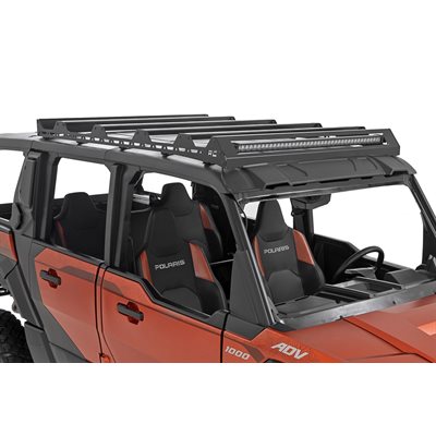 Off-road adventures require serious gear, and flimsy racks just don't cut it. Rough Country's Xpedition Roof Rack is the solution. This heavy-duty rack boasts features like adjustable cross rails, light bar compatibility, and a durable powder coat finish. Plus, the bolt-on installation makes it easy to get you trail-ready fast. Upgrade your Xpedition's storage capacity and conquer any challenge with confidence.Maximized Mounting Options: With slotted cross rails for a versatile setup, this rack is ready to adapt to any and all of your cargo needs. Our ingenious cross rails feature tracks that let you slide your mounts and accessories anywhere for a perfect, custom fit.Light Up the Trail: Who wants to navigate uncharted territory in the dark? This rack boasts a beefy front section that can handle a 40" LED light bar.Durable Powder Coat Finish: Don't let the elements stop your off-road fun. The Rough Country Roof Rack boasts a tough powder coat finish that protects against scratches, fading, and rust. It'll keep your rack looking sharp for years to come.Stainless Steel Hardware: We know you rely on your Polaris Xpedition to go anywhere, anytime. That's why our Roof Rack uses top-quality stainless-steel hardware. It resists rust and corrosion, no matter the conditions GÇô from scorching desert sun to freezing mountain snow. This rack is built to handle your toughest adventures.Bolt-on Installation: We get it; drilling into your brand-new machine is no fun. This Roof Rack utilizes existing attachment points for a stress-free, bolt-on installation that gets you trail-ready in no time.So ditch the flimsy racks and level up your Xpedition's game. Rough Country's Roof Rack is the ultimate partner for your off-road excursions, letting you conquer trails, blaze new paths, and look good doing it!