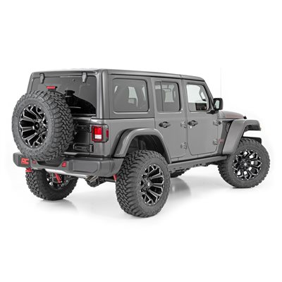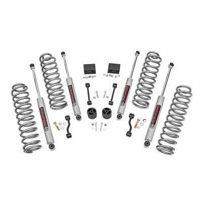 Put the finishing touch on your Jeep Wrangler JL 4-Door Rubicon with Rough Country's 2.5-Inch Suspension Lift Kit. This kit provides the clearance to easily run 35-inch tires, giving your JL a bold, trail-ready stance and taking its off-road performance to new heights.Level Up Your Ride: Eliminate the factory nose-dive and achieve a sleek, leveled look. This lift kit levels the front with the rear, giving your Jeep a rugged stance ready for any trail.Improved Off-Roading Performance: Gain the extra ground clearance needed to tackle challenging trails without worry. Optimized approach, breakover, and departure angles allow your JL to handle tough terrain with confidence.Ride Improvement: Linear coil rate springs enhance handling and load support, improving performance on winding trails and rough terrain.Custom Shock Options: Configure your lift with nitrogen-charged N3 shocks, V2, M1 Monotube, or premium M1R shocks to match your driving style, from comfortable daily use to serious off-road capability.Additional Tire Clearance: This kit clears up to 35-inch tires, giving your Jeep a bold, aggressive look that stands out on and off the road.Easy Bolt-On Installation: A hassle-free, 100% bolt-on design means you can install the lift quickly and get back to the trails without complicated modifications.