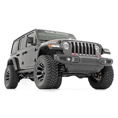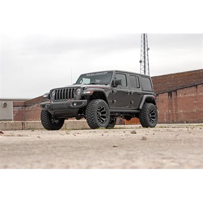 Put the finishing touch on your Jeep Wrangler JL 4-Door Rubicon with Rough Country's 2.5-Inch Suspension Lift Kit. This kit provides the clearance to easily run 35-inch tires, giving your JL a bold, trail-ready stance and taking its off-road performance to new heights.Level Up Your Ride: Eliminate the factory nose-dive and achieve a sleek, leveled look. This lift kit levels the front with the rear, giving your Jeep a rugged stance ready for any trail.Improved Off-Roading Performance: Gain the extra ground clearance needed to tackle challenging trails without worry. Optimized approach, breakover, and departure angles allow your JL to handle tough terrain with confidence.Ride Improvement: Linear coil rate springs enhance handling and load support, improving performance on winding trails and rough terrain.Custom Shock Options: Configure your lift with nitrogen-charged N3 shocks, V2, M1 Monotube, or premium M1R shocks to match your driving style, from comfortable daily use to serious off-road capability.Additional Tire Clearance: This kit clears up to 35-inch tires, giving your Jeep a bold, aggressive look that stands out on and off the road.Easy Bolt-On Installation: A hassle-free, 100% bolt-on design means you can install the lift quickly and get back to the trails without complicated modifications.