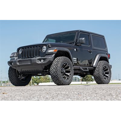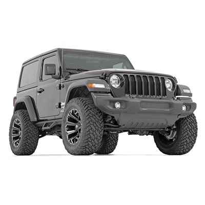 Put the finishing touch on your Jeep Wrangler JL 2-Door with Rough Country's 2.5-Inch Suspension Lift Kit. This kit provides the clearance to easily run 35-inch tires, giving your JL a bold, trail-ready stance and taking its performance to new heights.Level Up Your Ride: Eliminate the factory nose-dive and achieve a sleek, leveled look. This lift kit levels the front with the rear, giving your Jeep a rugged stance that's ready for any trail.Improved Off-Roading Performance: Gain the extra ground clearance you need to tackle challenging trails without worry. Optimized approach, breakover, and departure angles ensure your JL handles tough terrain with confidence.Ride Improvement: Linear coil rate springs improve handling and load support, enhancing ride quality both on and off the trail.Custom Shock Options: Configure your lift with nitrogen-charged N3 shocks, V2, M1 Monotube, or premium M1R shocks to match your preferred ride, from daily comfort to maximum off-road performance.Additional Tire Clearance: This kit clears up to 35-inch tires, giving your Jeep a bold, aggressive look that will turn heads on and off the road.Easy Bolt-On Installation: A hassle-free, 100% bolt-on design means you can install the lift quickly and get back to the trails without complex modifications.