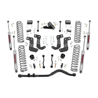 Take Your Jeep JL 4xe to the Next Level: When it comes to your four-door Jeep JL 4xe, you need a lift that delivers unmatched off-road capability without sacrificing on-road comfort. Rough Country's 3.5-inch Lift Kit gives you the perfect blend of legendary trail performance, smooth highway handling, and rugged style.Boosted Ground Clearance for Any Terrain: Conquer rocky trails, deep ruts, and uneven ground with ease. This lift kit provides the extra clearance your Jeep Wrangler Unlimited needs to clear obstacles, keeping you in control no matter where adventure takes you.Perfectly Leveled Stance: Say goodbye to the factory nose-down rake. Our kit raises the front to match the rear, giving your Jeep a balanced, aggressive profile and a more stable ride both on and off the pavement.Tuned Coil Springs for Superior Ride Quality: Engineered with OEM-based spring rates, these coil springs deliver factory-like comfort with enhanced handling. The linear coil rate design further improves stability and load support, keeping your Jeep planted even when the terrain gets wild.Room for Larger Tires: Ready for an aggressive look and more grip? This kit accommodates up to 35-inch tires, giving your Jeep the muscular stance and performance you've been dreaming about.Heavy-Duty Forged Track Bar: Built from solid forged steel, the included track bar offers unsurpassed strength and durability. With a massive 1.25-inch outside diameter and OEM-style rubber bushings, it keeps your axles perfectly centered and your suspension dialed in for peak performance.Control Arm Drop Brackets for Optimal Geometry: Maintain factory arm angles for improved suspension travel and ride comfort, even after lifting your Jeep.Fast, Hassle-Free Installation: Spend less time in the garage and more time on the trails with a kit designed for straightforward installation.Customizable Shock Options: Tailor your ride with your choice of nitrogen-charged N3 shocks, performance-driven M1 shocks, or premium M1 Reservoir shocks, so you can match your suspension to your driving style.With Rough Country's 3.5-inch Lift Kit, you're not just modifying your Jeep, you're building it for adventure, durability, and performance that lasts.