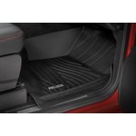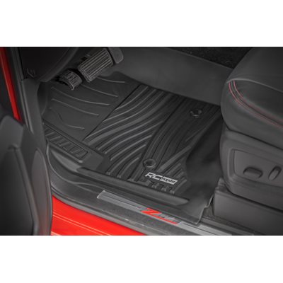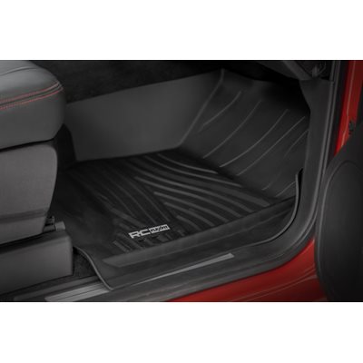 Introducing Flex-Fit floor mats ' the ultimate enhancement for your truck's interior and built tough to handle any challenge. Crafted from premium rubber-like material, these mats are as durable as they come, perfectly tailored to fit your truck's unique shape for a seamless finish.\Stock floor mats just don't cut it for adventurers. They get trashed by mud, don't hold up to spills, and leave your carpets a mess. Give your ride the all-weather protection it deserves with Rough Country's Flex-Fit Floor Mats, the perfect solution for keeping your vehicle clean and protected.\All-Weather Protection: Engineered to fit your vehicle perfectly, these mats provide top-notch defense against snow, mud, sand, saltwater, and more.\Spill Saver Lip: Don't sweat the spills! Our mats feature a Spill Saver Lip that prevents liquids from reaching your carpet, so you can enjoy your coffee on the go without worry.\Non-Slip, Textured Surface: Stay in control no matter the terrain with our mats' non-slip, textured surface, designed to keep your feet firmly planted while driving.\Easy to Clean and Maintain: Cleaning up is a breeze! These mats are detachable and easy to clean, so you can spend less time on maintenance and more time hitting the road.\Premium Materials: Constructed from a rubber-like TPE material, these mats are built to withstand extreme temperatures without cracking or warping. They will stay flexible and functional for the long haul.\Effortless Installation: Forget wrestling with bulky mats. Flex-Fit Mats slide right into place for a quick and frustration-free installation.\Upgrade your truck's defense against the elements with Rough Country's Flex-Fit Floor Mats. They'll keep your carpets looking fresh and give you peace of mind on every adventure.