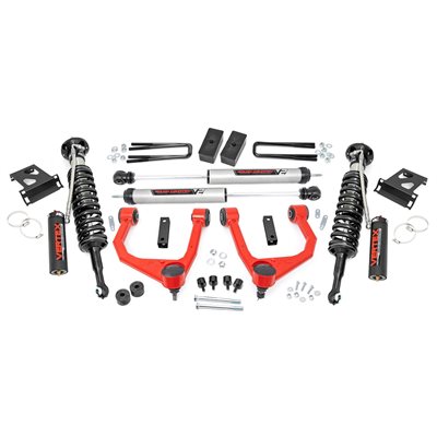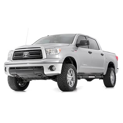 Rough Country's 3.5in Bolt-On Kit offers easy installation and aggressive good looks at an incredible value. Take your truck to new heights with this excellent option for 07-17 Tundra pickups.This kit features a set of high-quality, tubular Upper Control Arms designed to make alignment adjustments easier and durable rubber bushings. These arms are designed to promote a factory-like geometry by keeping the ball joint at optimum angles after lifting. This design allows for an improved, greater range of motion from the ball-joint, with less stress, wear and tear.Rough Country's 3.5-inch Bolt-On Kit features V2 Monotube Nitrogen-charged shocks, giving your truck incredible ride-quality both on and off-road. Also included are a set of durable loaded struts and fabricated rear blocks to provide lift height from front to rear. Once installed, this kit gives your truck plenty of ride height for larger tires while offering a clean, level look from front to rear.This all-inclusive kit comes with everything you need, and installation is a piece of cake compared to other kits on the market! Featuring a 100% bolt-on installation process that requires zero cutting or drilling, this kit can be installed using common tools in a home garage, and allows the truck to be returned to stock at any time if so desired. Best of all this kit features Rough Country's Lifetime Replacement Warranty.